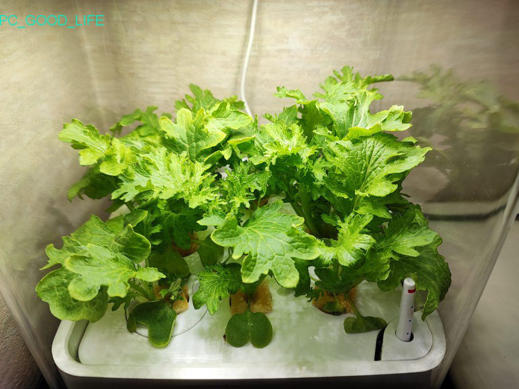 16日目です。本葉がかなり茂ってきました。水位フロートをみると培養液も減っています。数日後には補給する予定です。