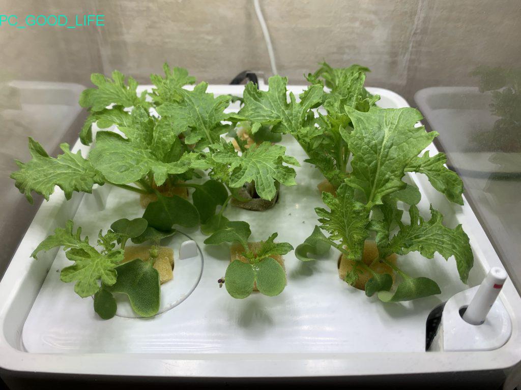 栽培数(間引き後):レタス・葉もの野菜系:4株、ベビーリーフ系、ハーブ系:9株
