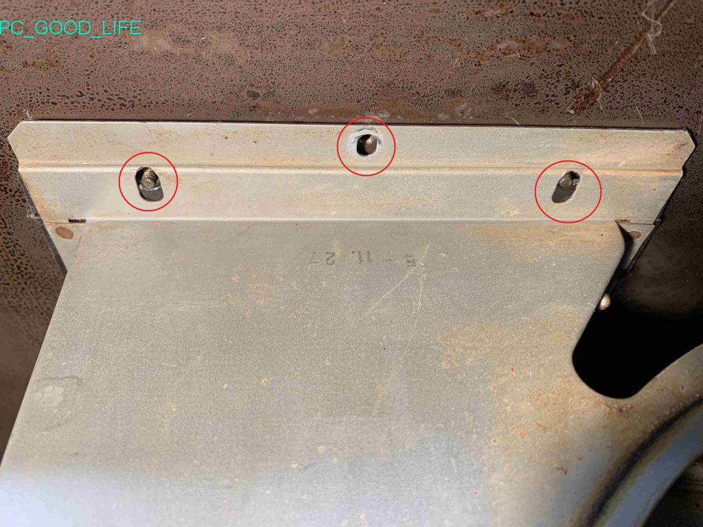 【fig.70】カタツムリ右側は2つの赤丸の位置を合わせます。締めるネジは上下の2本です。