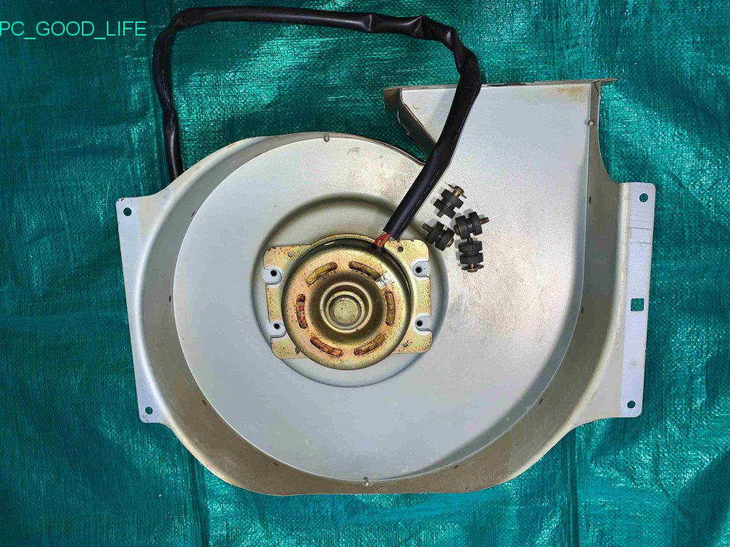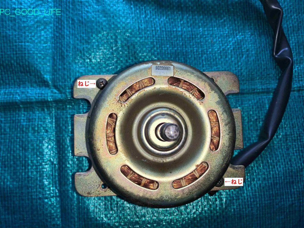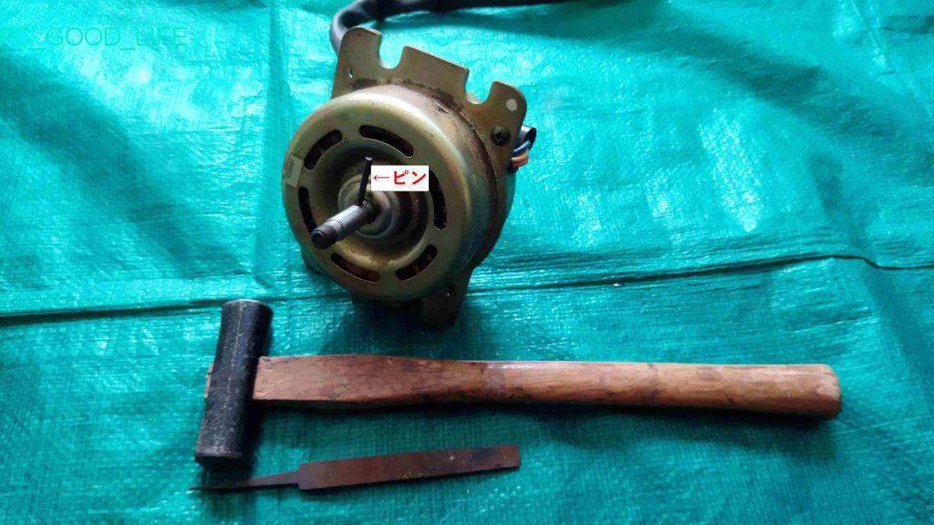 【fig.63】ピンを適切な位置に打ち込み終わった後にモーターの軸にシロッコファンをセットして指で回して回転を確かめます。